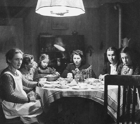 Abb. oben: Die Familie eines Angestellten im Wohnzimmer, ca. 1941 |