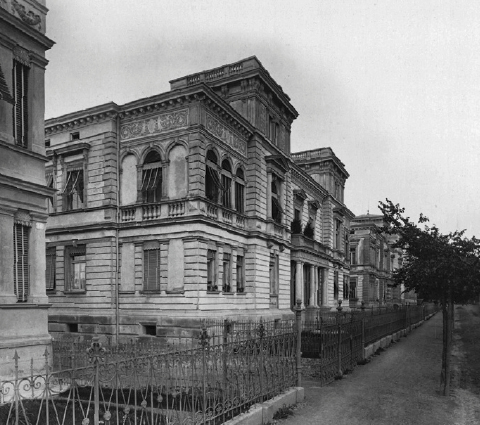 Das Augsburger Westend – ein großbürgerliches Wohnviertel Nachdem 1866 die Festungseigenschaft Augsburgs aufgehoben war, erfolgte im Zuge der Stadterweiterung unter Stadtbaurat Ludwig Leybold der Ausbau der Hühnerstraße als Teil des zwischen Klinkertor, Bahnhof und Theodor-Heuss-Platz angelegten Ringstraßennetzes. Westlich des ehemaligen Festungsgeländes entstand ein neues Wohnviertel für die großbürgerliche Oberschicht mit prächtigen Alleestraßen, privaten Vorstadt-Villen und repräsentativen öffentlichen Gebäuden. Durch die Verwendung des Formenrepertoire der Neorenaissance wurde die Hühnerstraße als einheitlicher Straßenzug gestaltet.